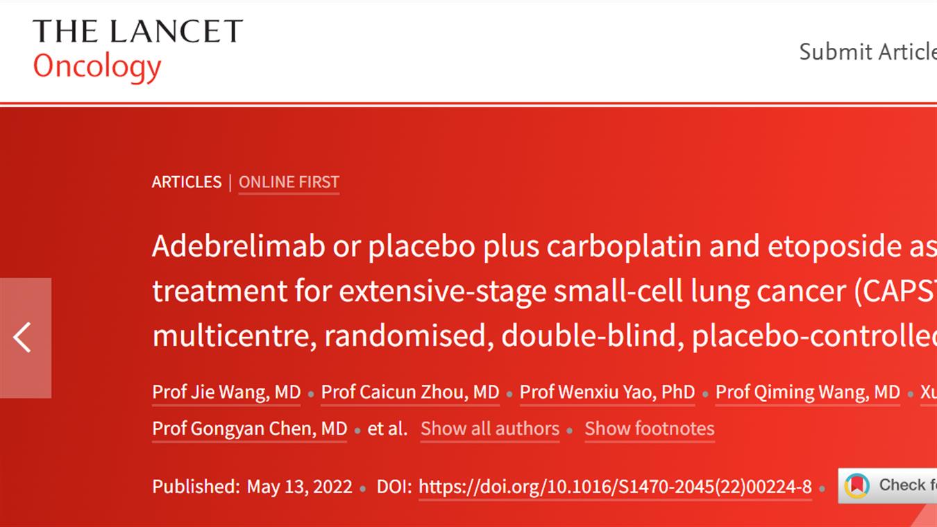 尊龙官方卡瑞利珠单抗联合阿帕替尼最新研究成果荣登《柳叶刀·肿瘤》